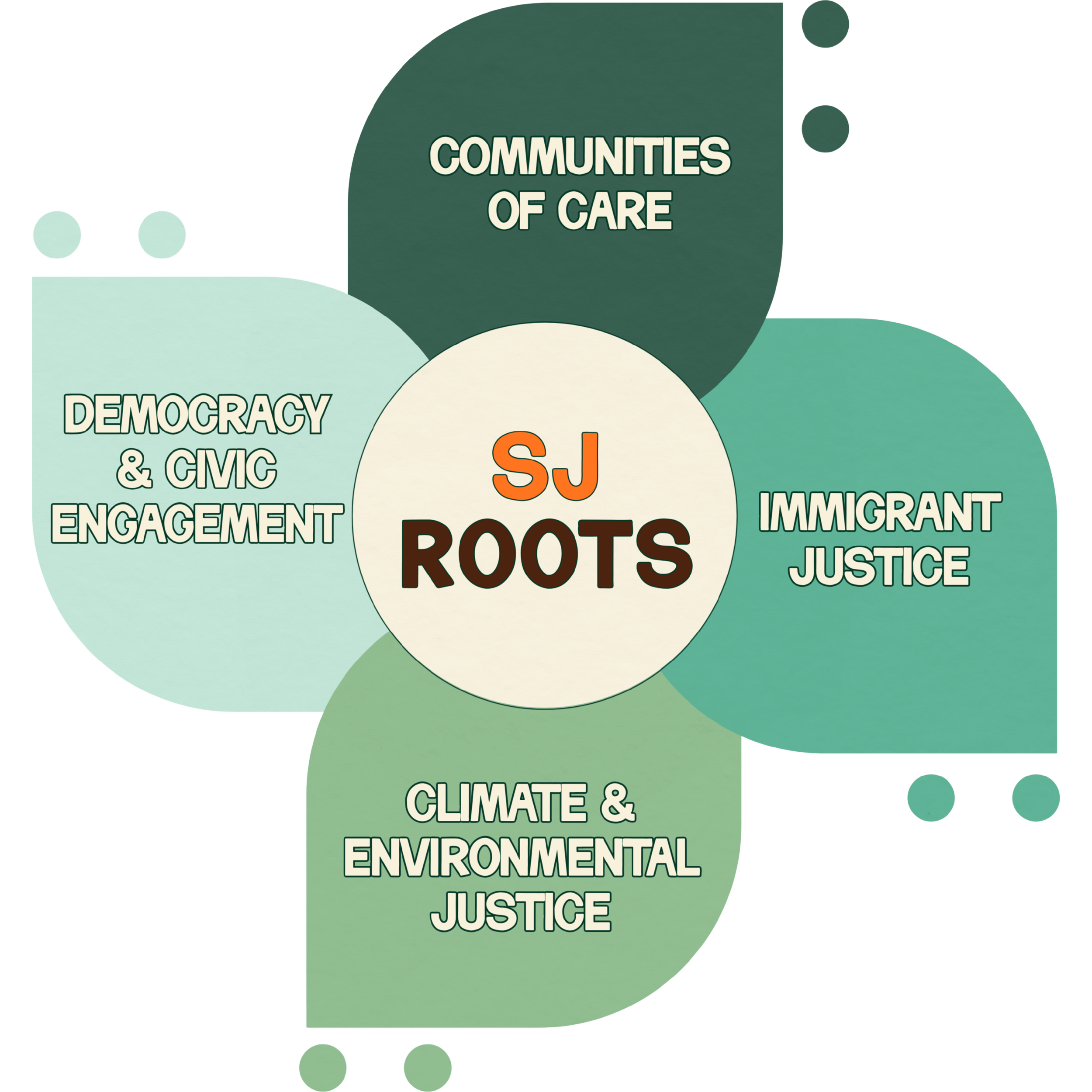 we organize across issue areas, but ground ourselves in the following four core pillar areas. Pillars are distinct but also overlap and reinforce each other.